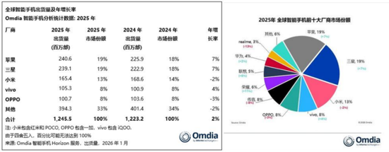 根据群智咨询(Sigmaintell)数据,2025年全球智能手机出货量约为12.0亿部,同比增长1.0%;国内智能手机出货量约为2.8亿部,同比微降0.2%。