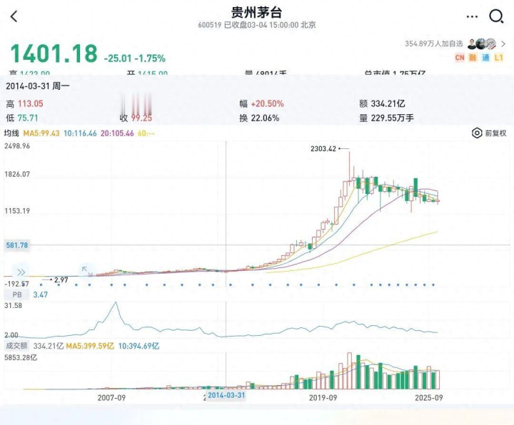当年贵州茅台14年1月份触底之后,整整涨了30倍,而且只花了7年时间。